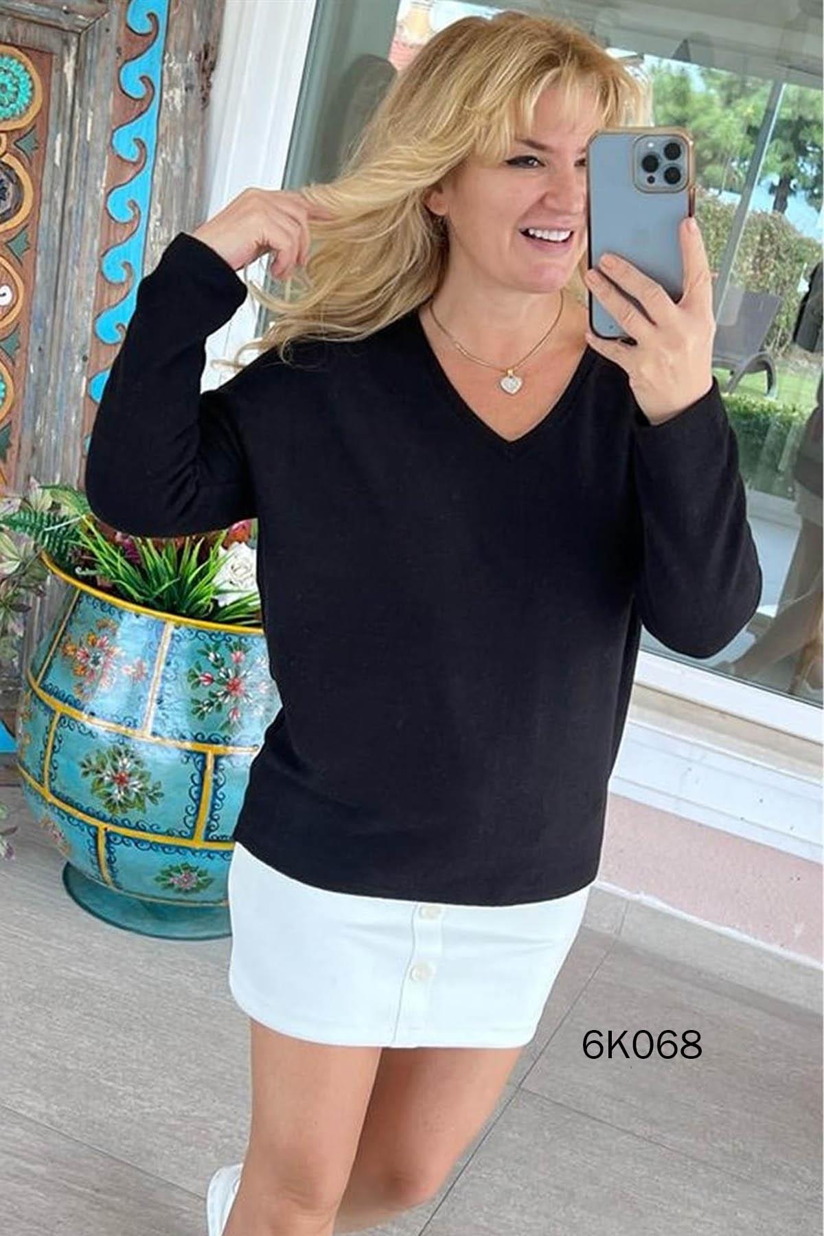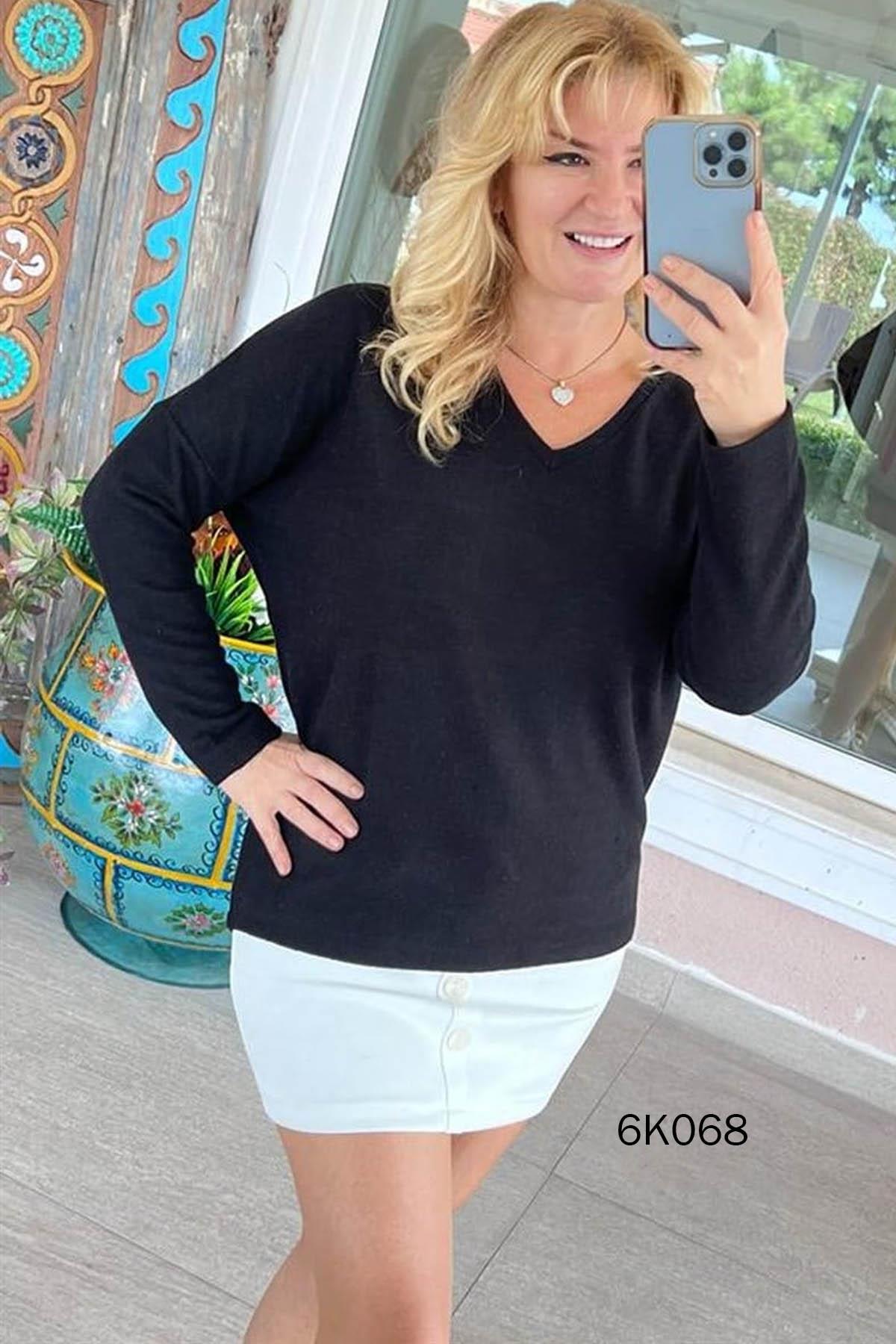 V Yaka Yarasa Kol Yumoş Triko Bluz