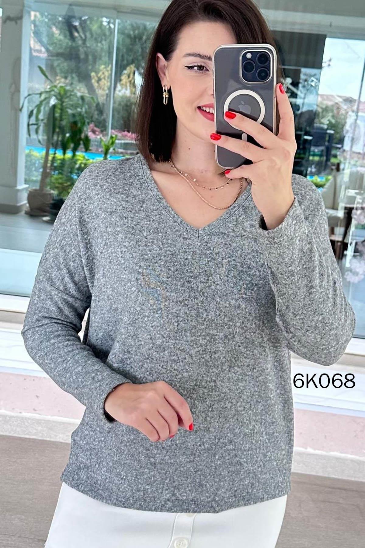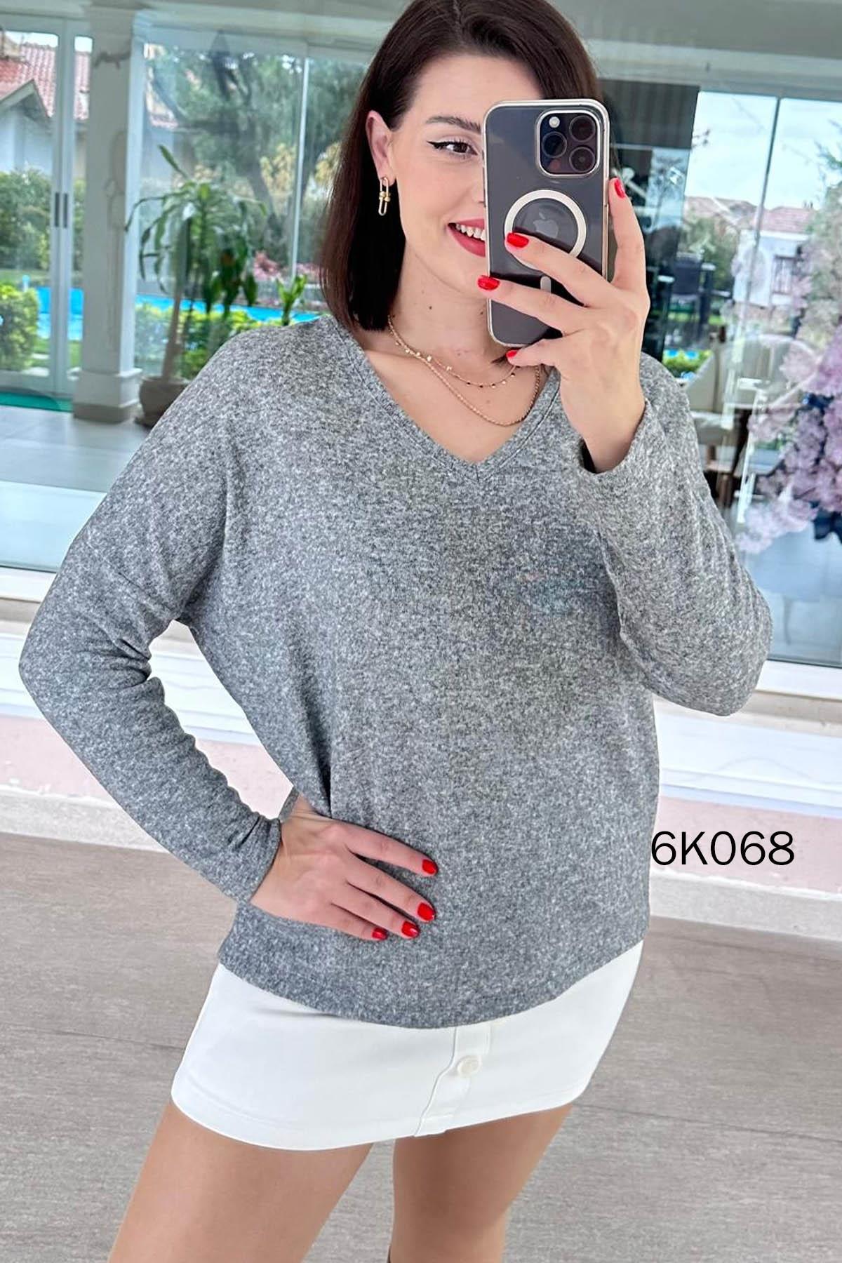 V Yaka Yarasa Kol Yumoş Triko Bluz