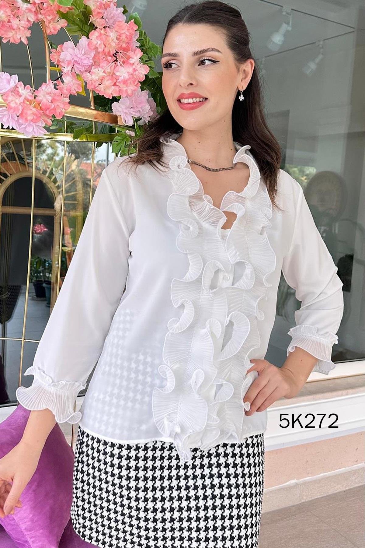 VOLANLI JESSİCA BLUZ OMUZDAN AŞAĞI 62 CM
