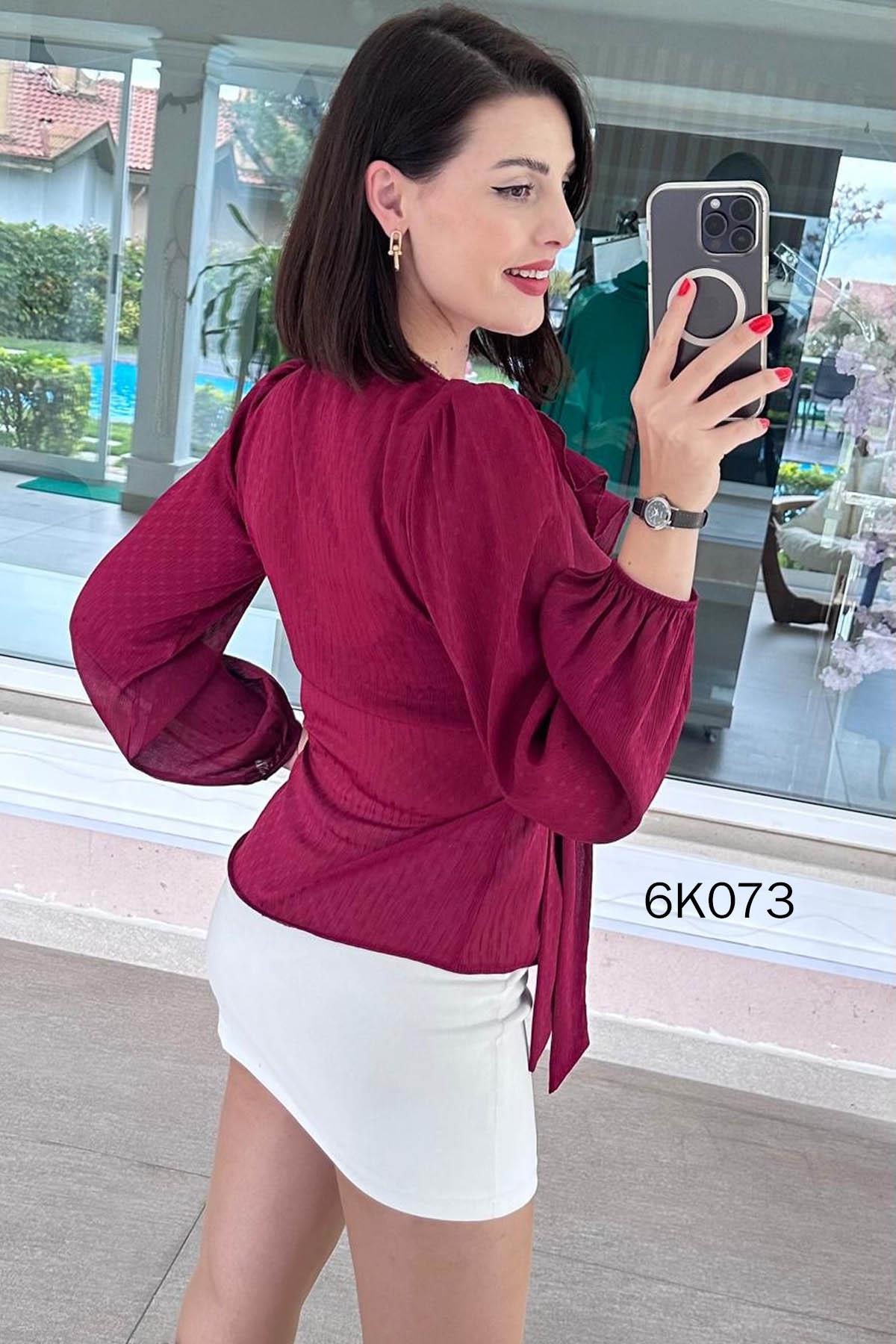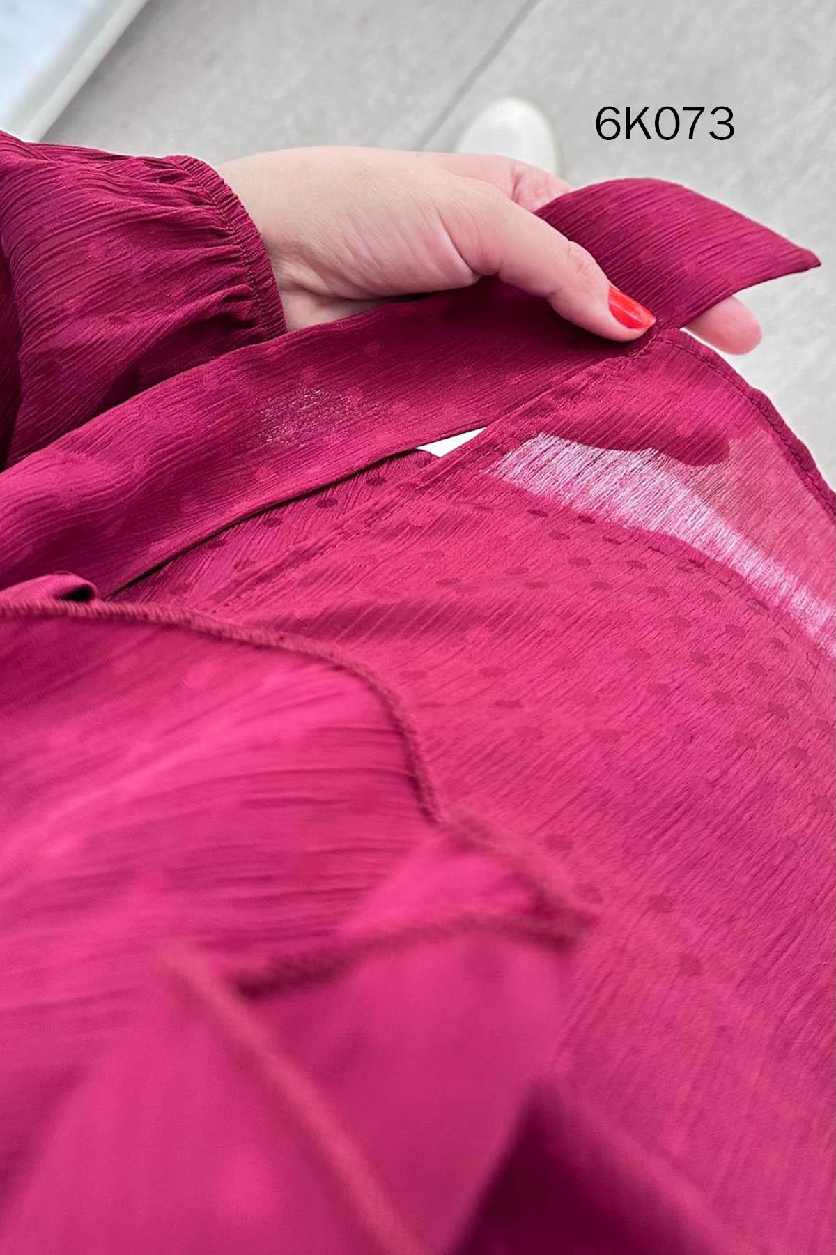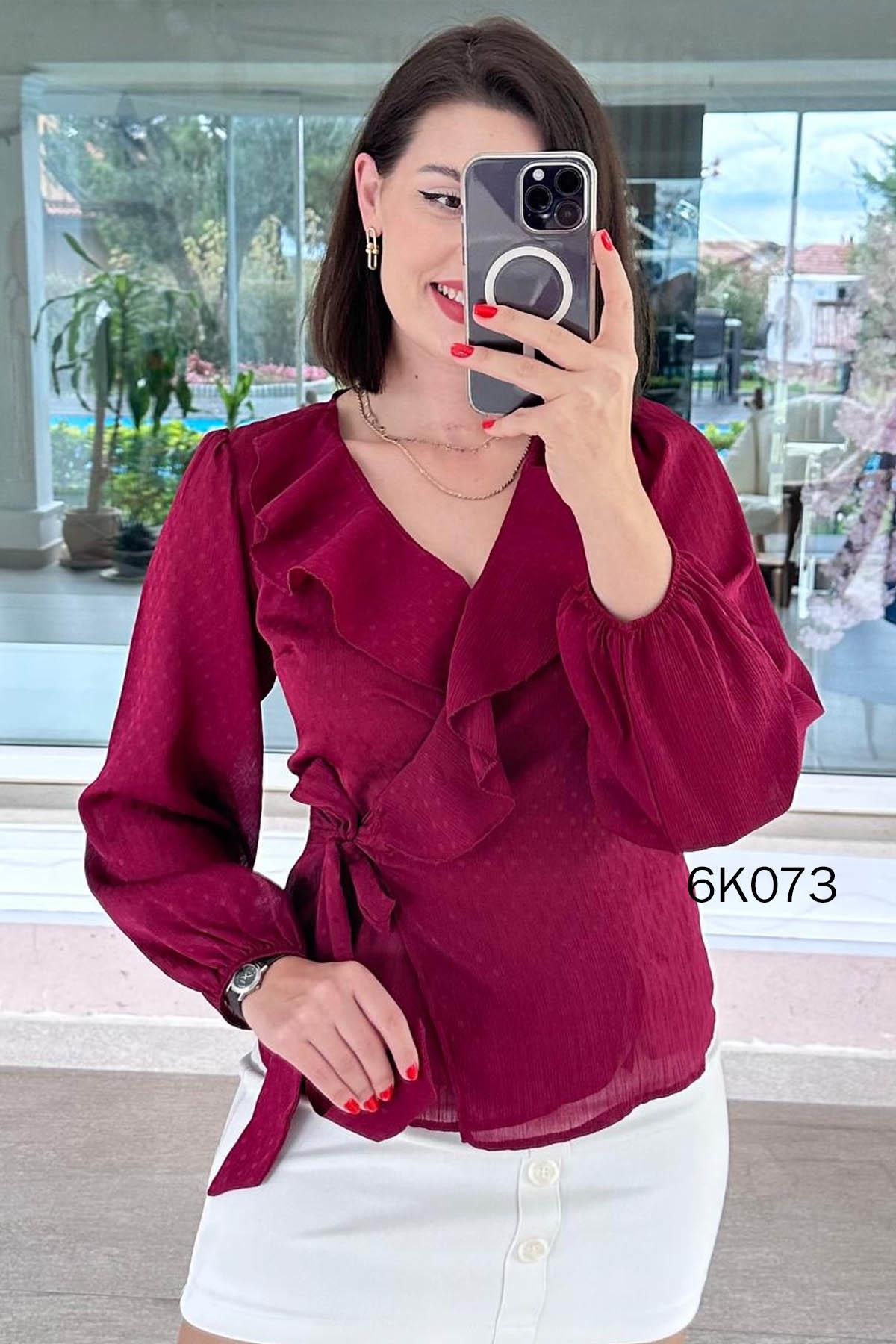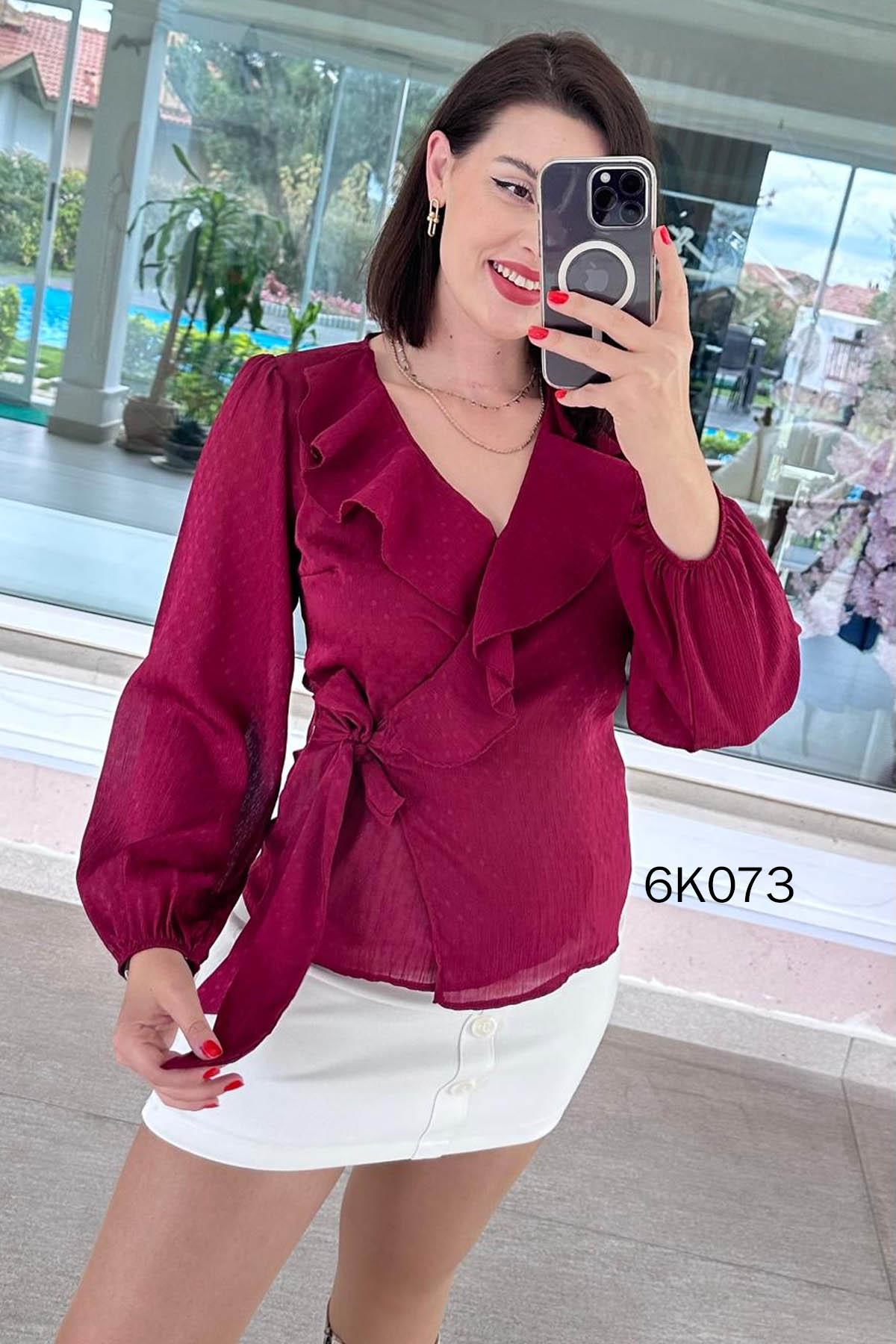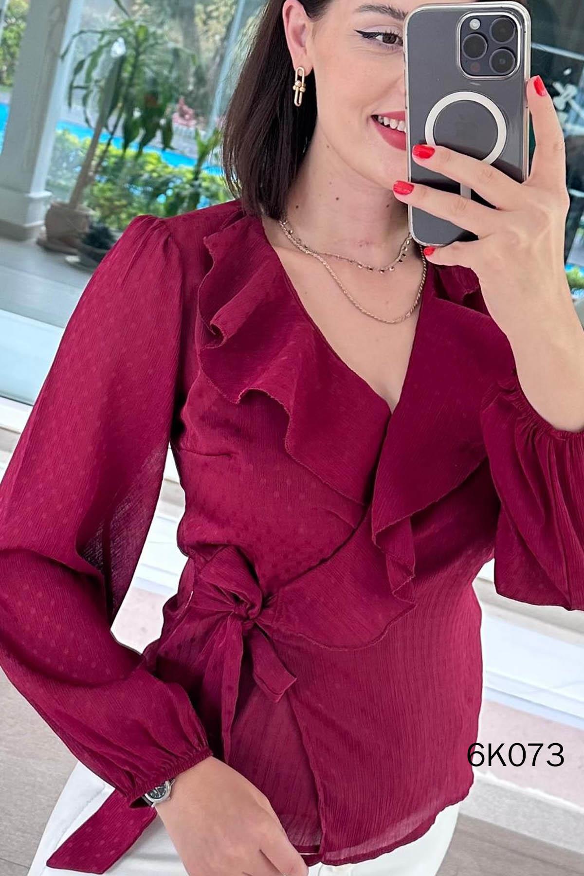 Volanlı Yandan Bağlamalı Jakarlı Saten Bluz