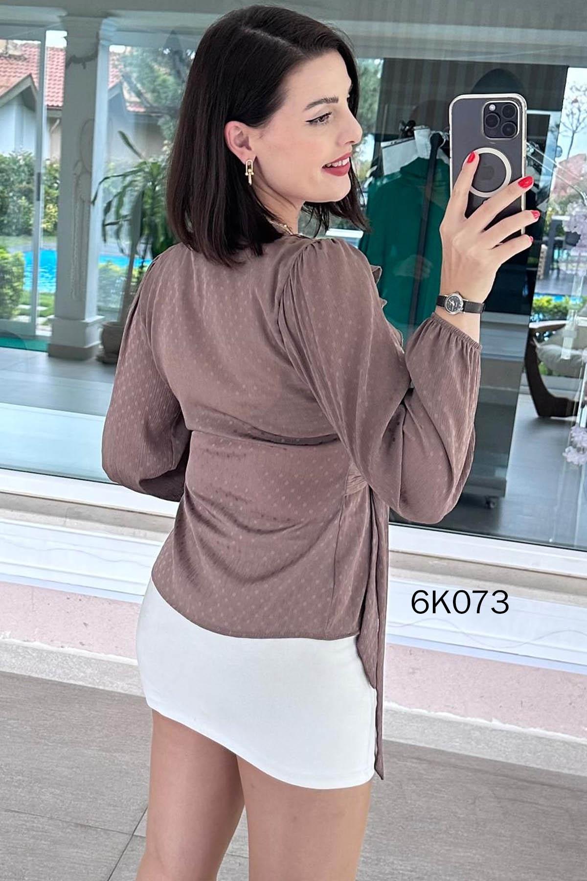 Volanlı Yandan Bağlamalı Jakarlı Saten Bluz