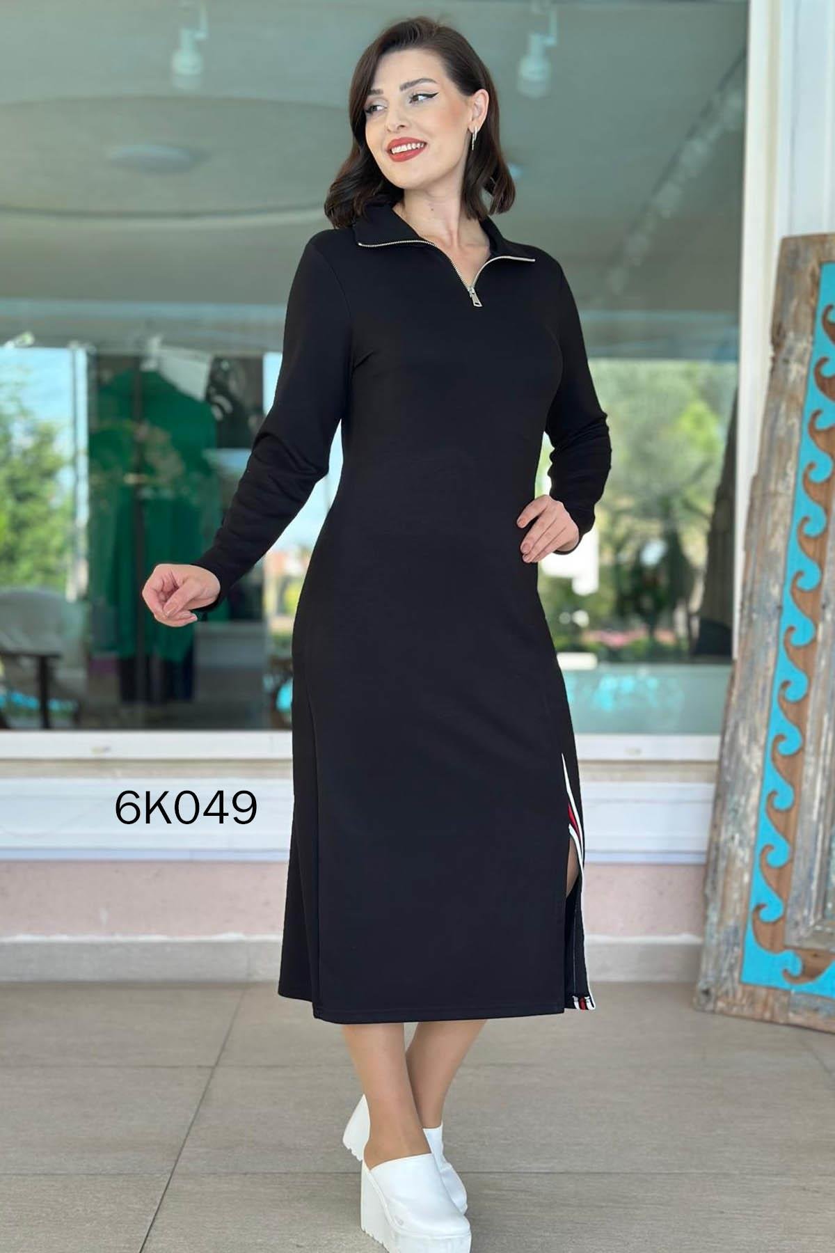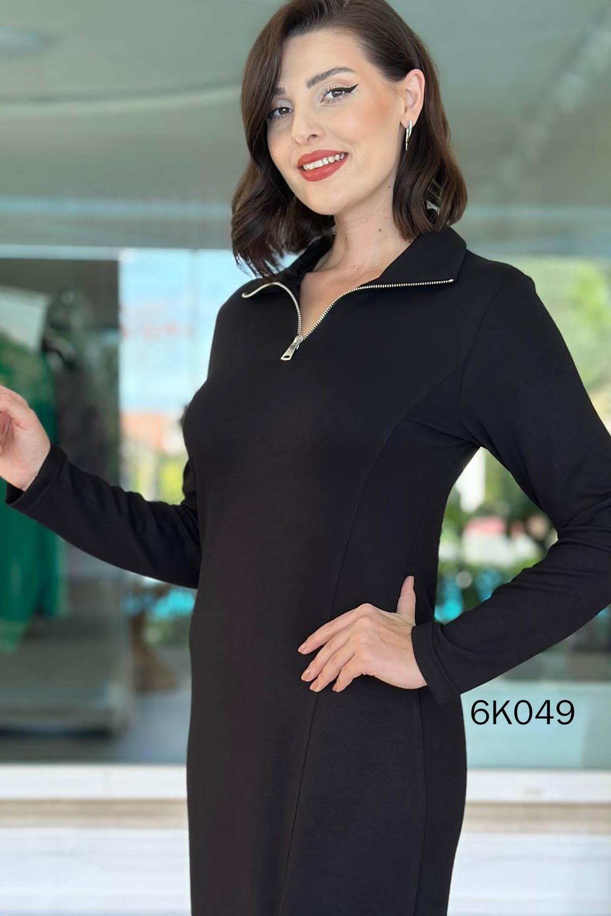 Yakası Fermuarlı Modal Elbise