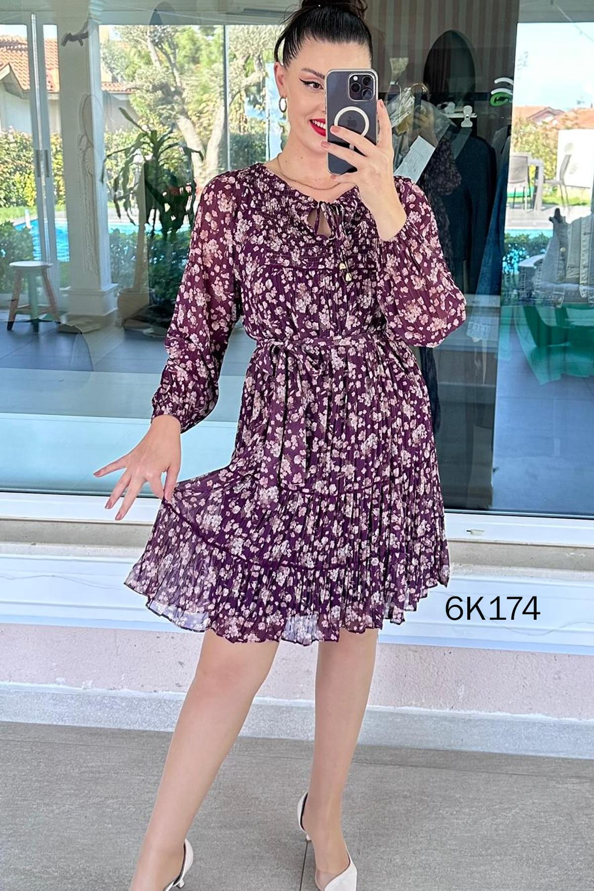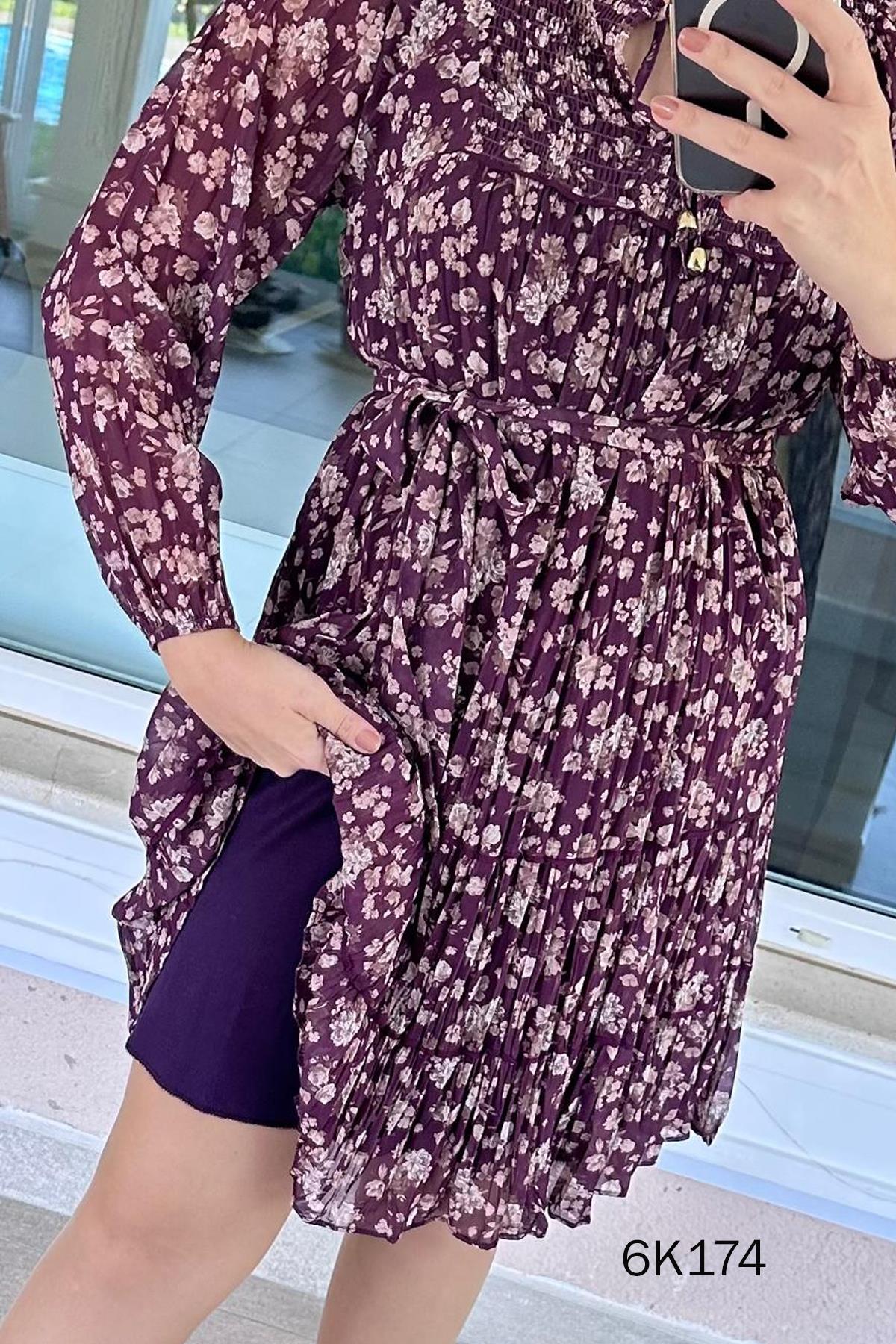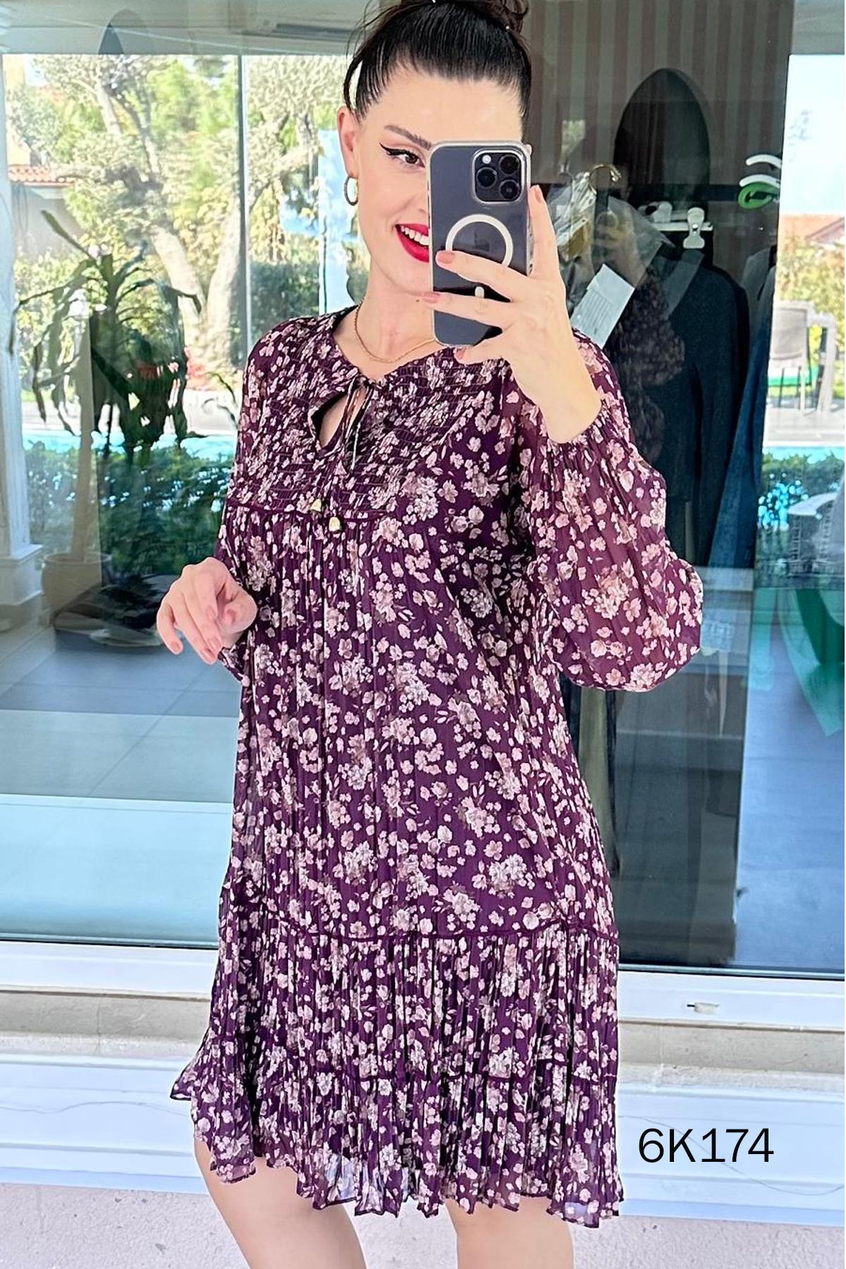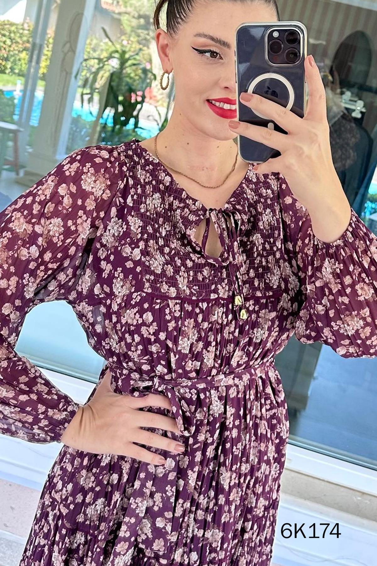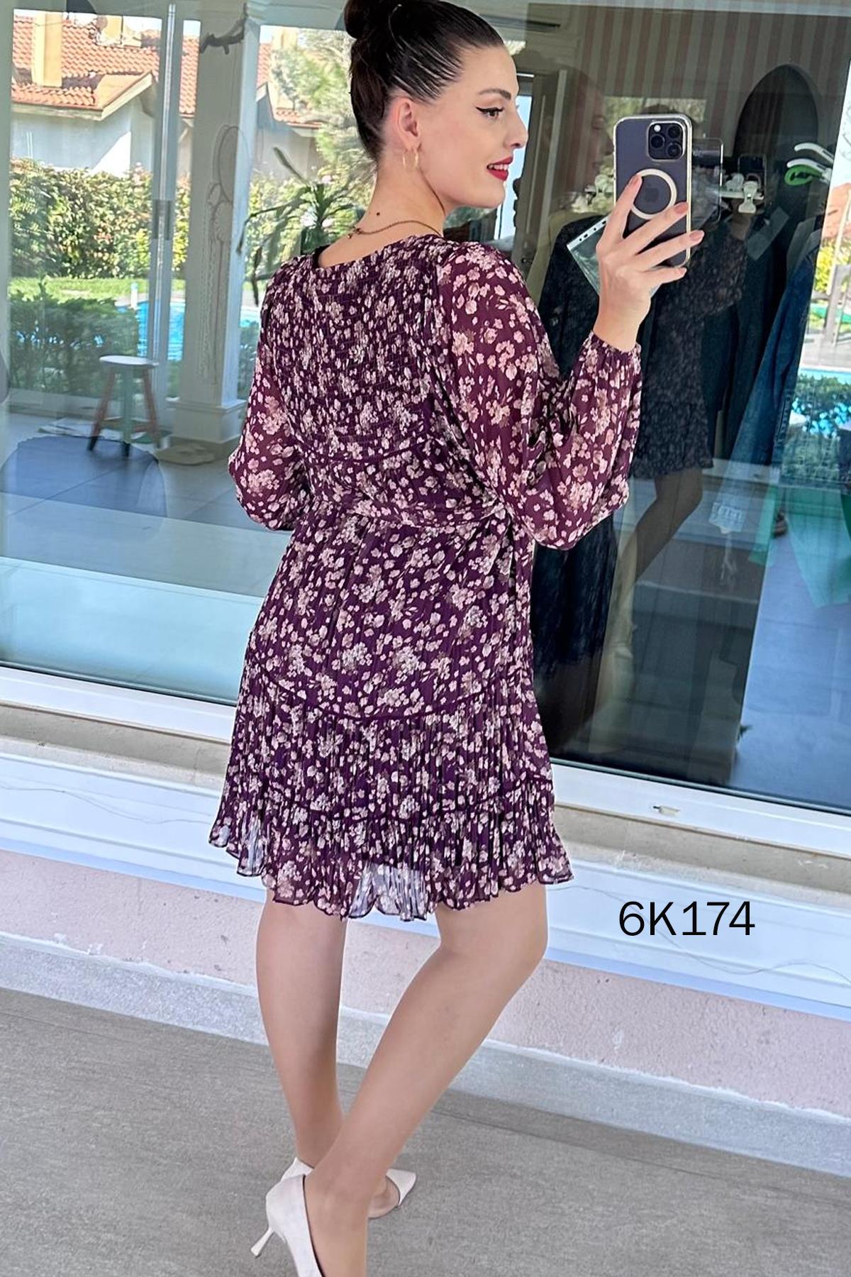 YAKASI GİPELİ ŞİFON DİZ BOY ELBİSE OMUZDAN AŞAĞI 95 CM