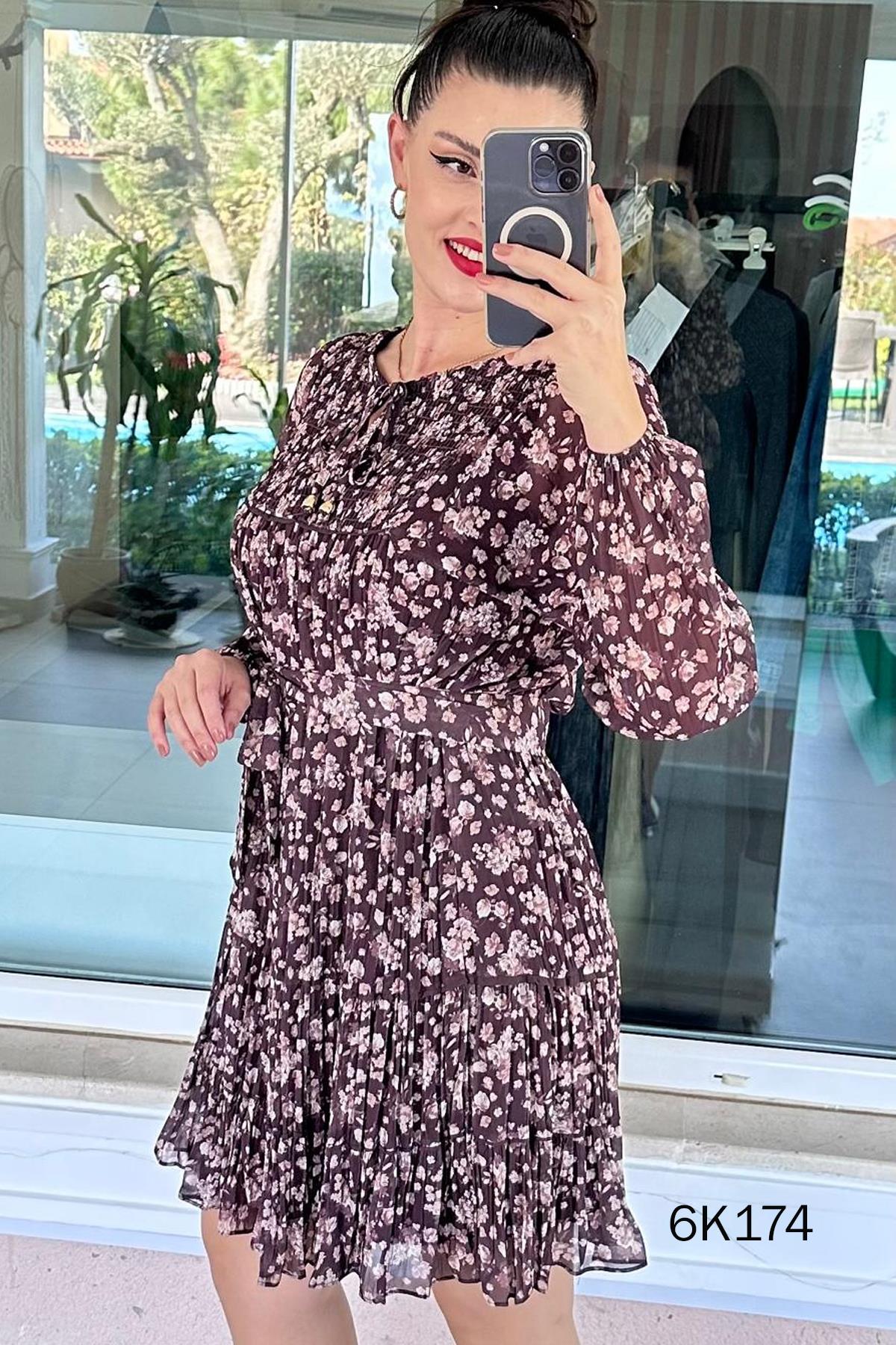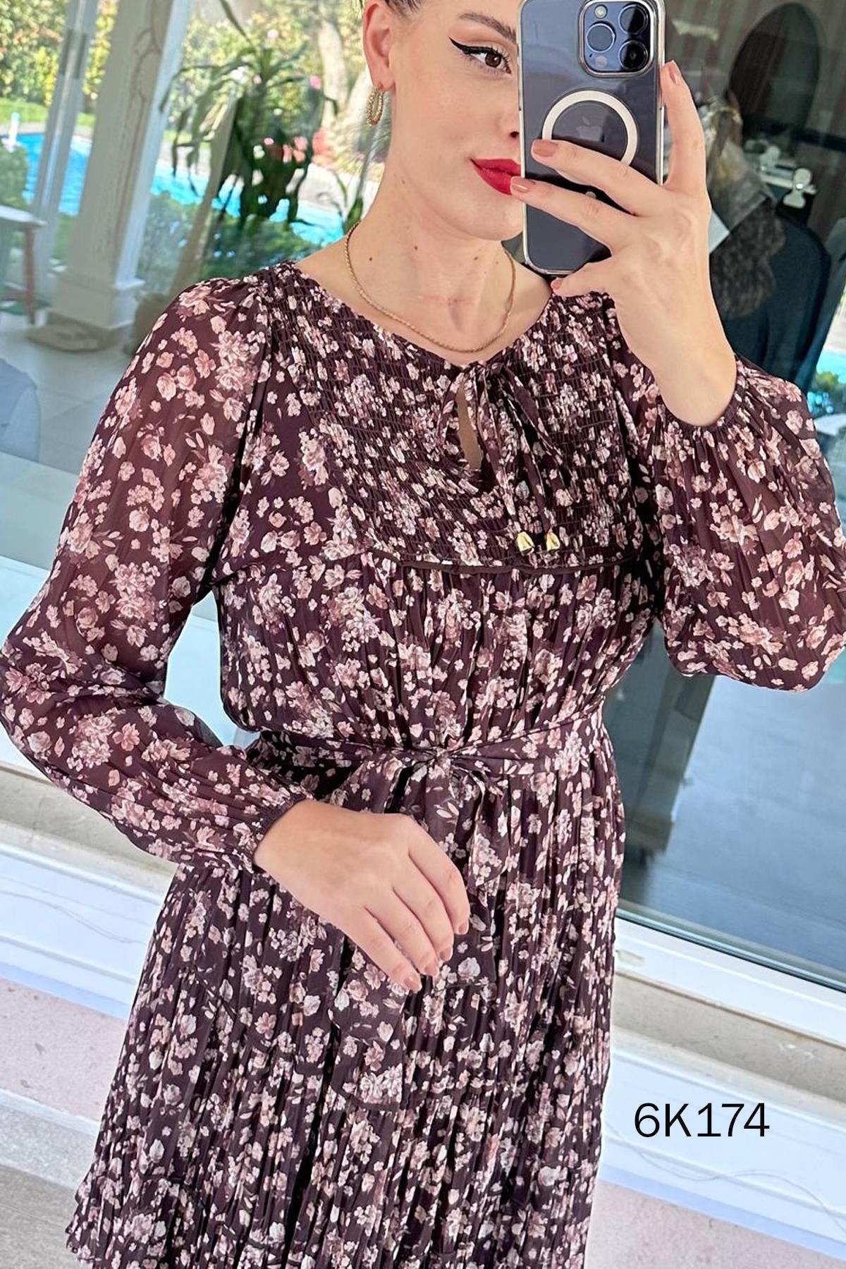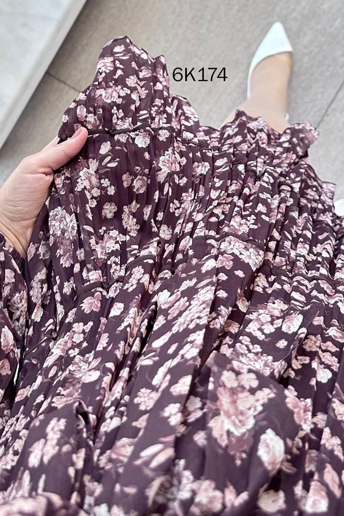 Yakası Gipeli Şifon Elbise