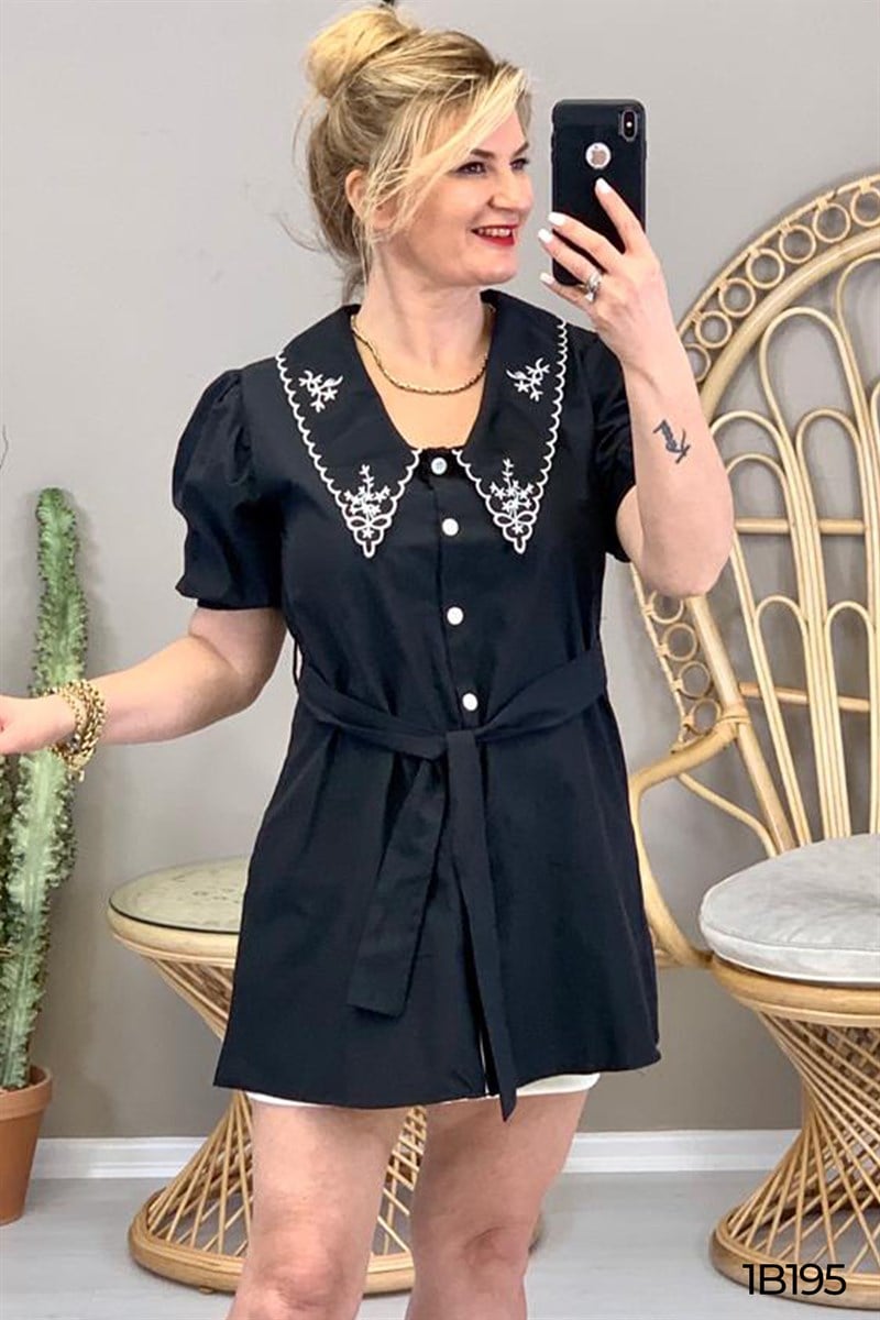 YAKASI NAKIŞLI TUNİK GÖMLEK OMUZDAN AŞAĞI 78 CM