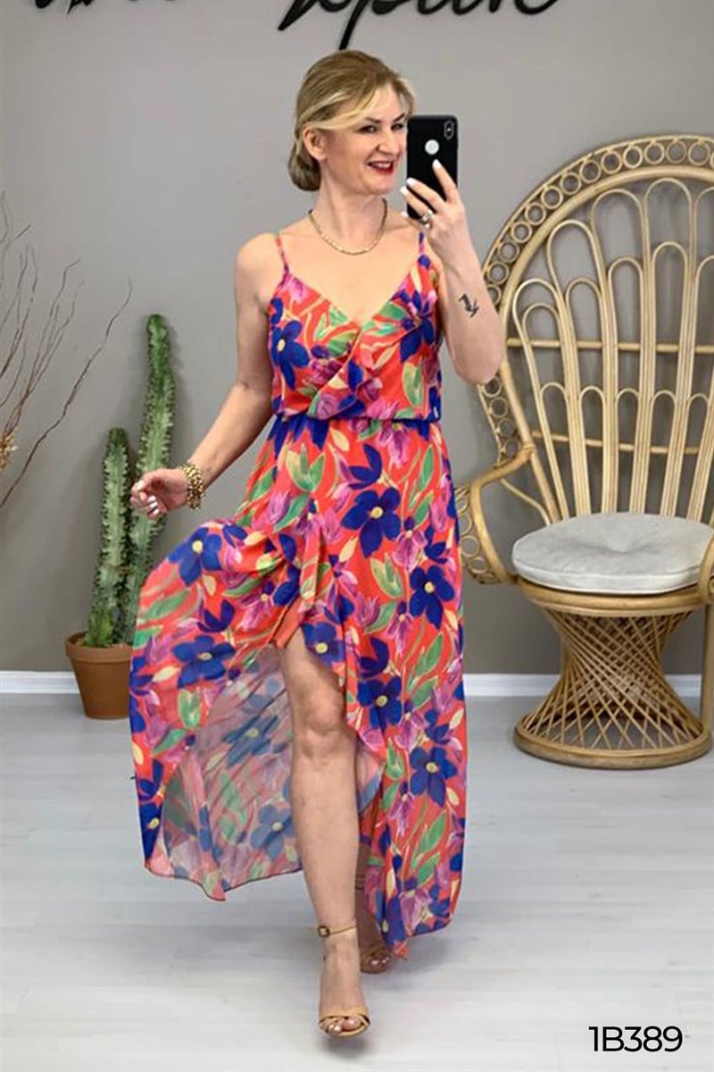 YAKASI VOLANLI İP ASKILI ELBİSE OMUZDAN AŞAĞI 140 CM