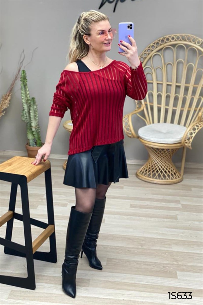 YAN OMUZ DETAY İKİLİ TRİKO BLUZ OMUZDAN AŞAĞI 57 CM