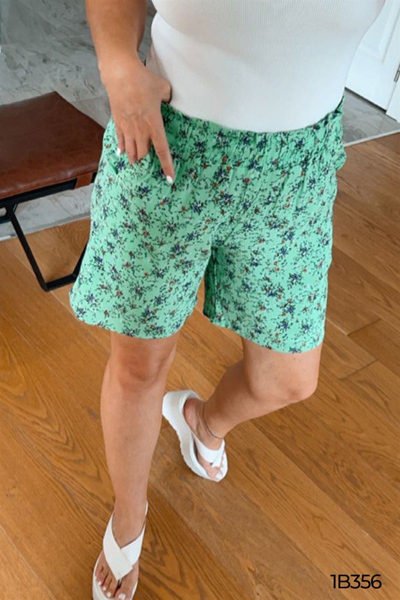 YANDAN CEPLİ ÇİÇEK DESENLİ ŞORT BELDEN AŞAĞI 50 CM