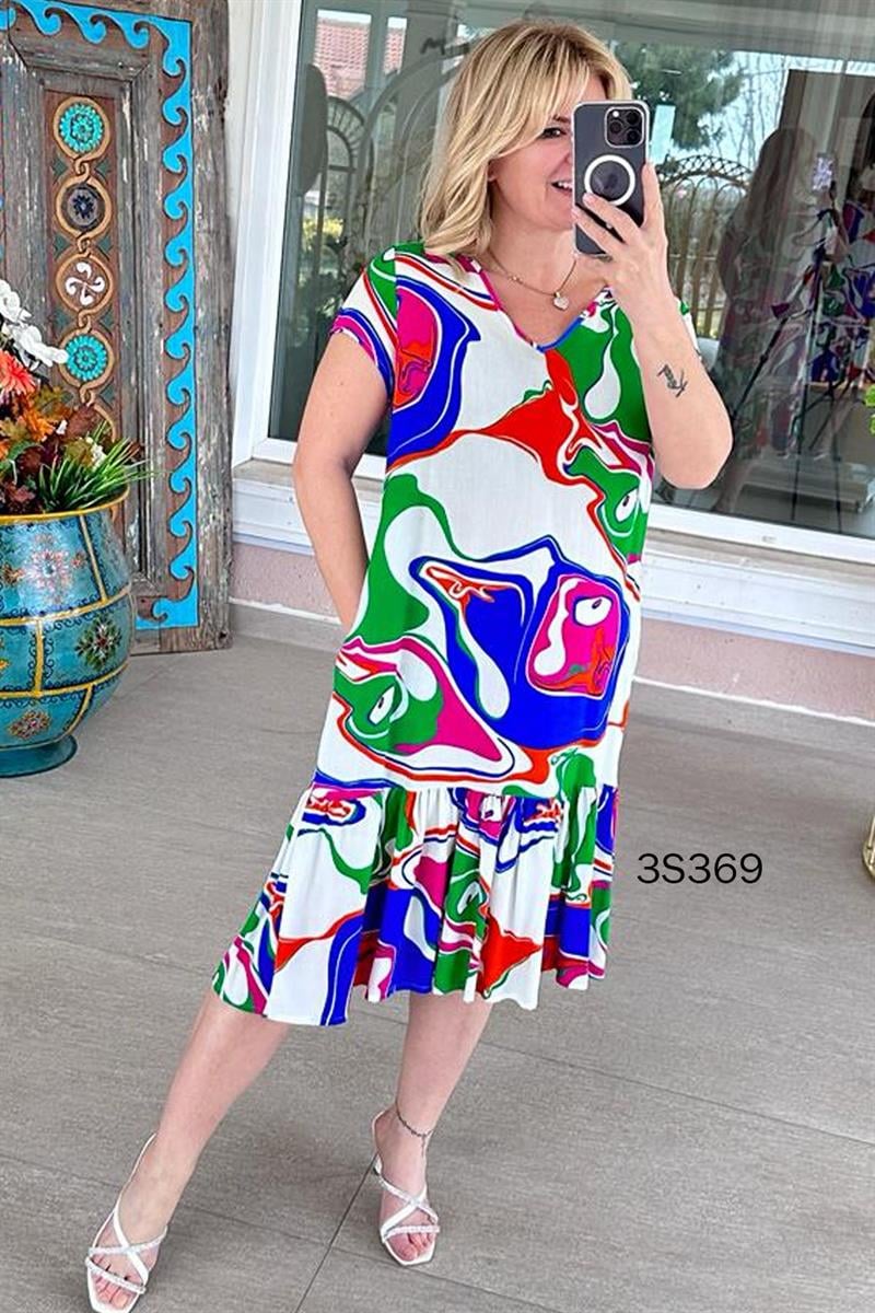 YANDAN CEPLİ ETEĞİ FIRFIRLI VİSKON ELBİSE OMUZDAN AŞAĞI 110 CM