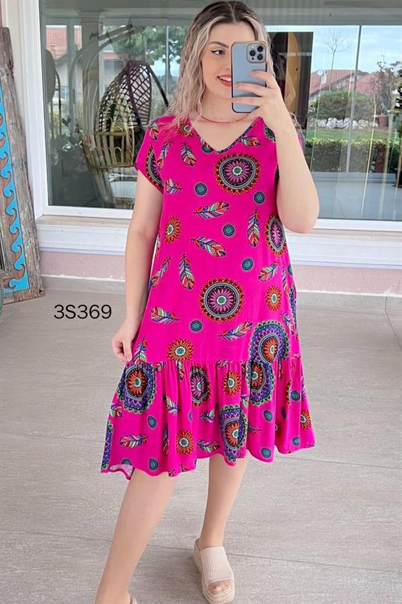 YANDAN CEPLİ ETEĞİ FIRFIRLI VİSKON ELBİSE OMUZDAN AŞAĞI 110 CM