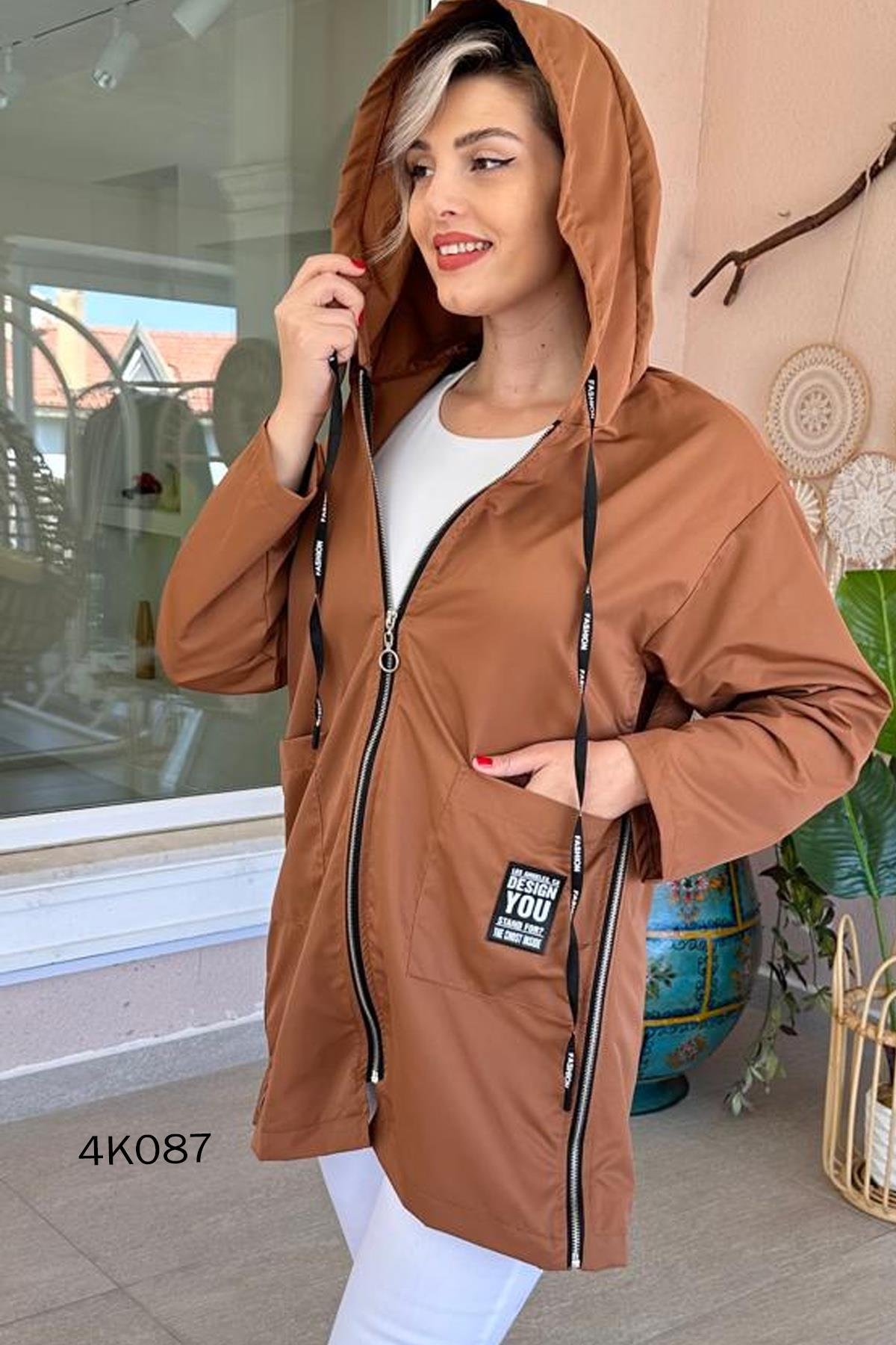 Yandan Fermuarlı Memori Kapşonlu Yağmurluk