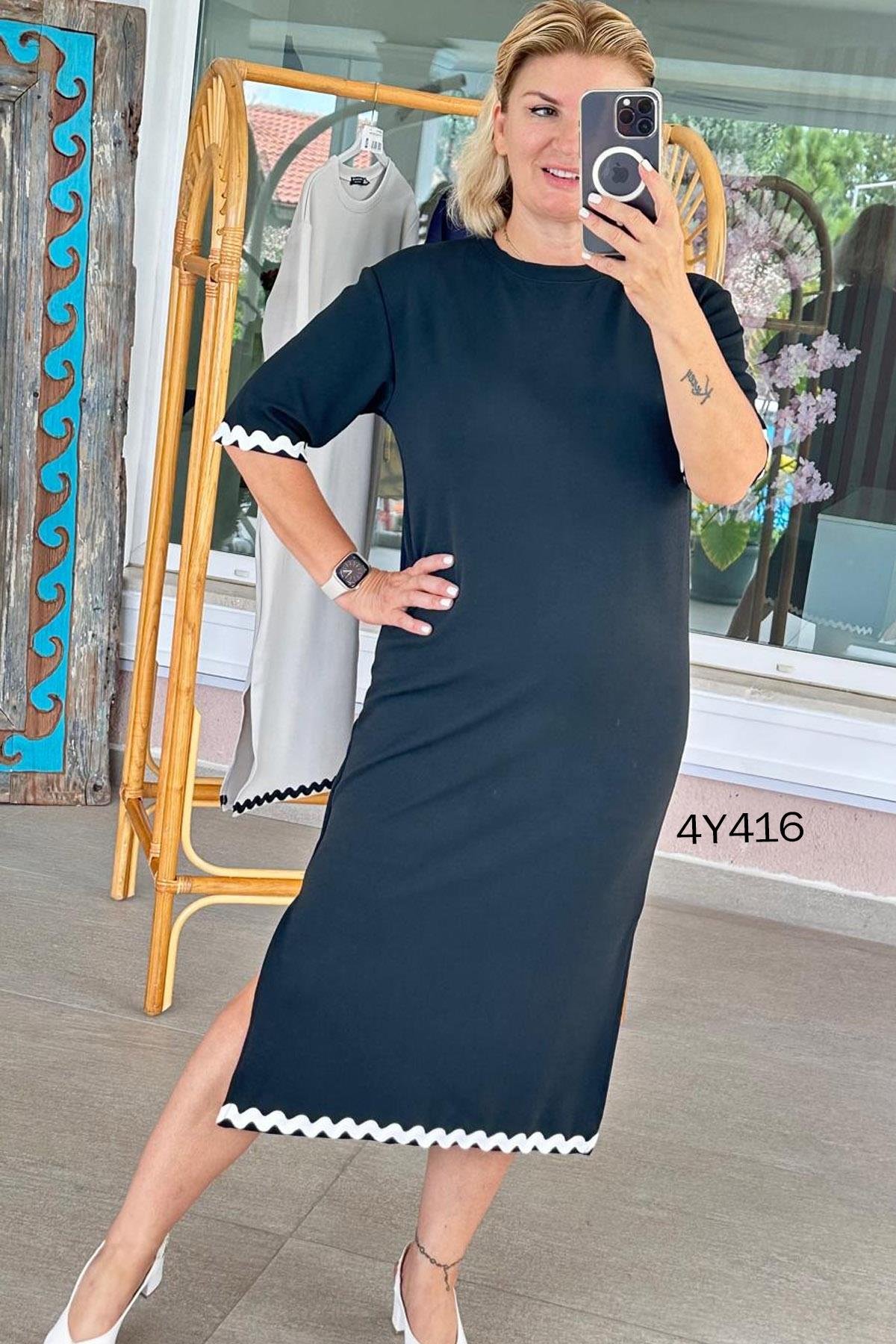 Su Taşı Detaylı Krep Elbise