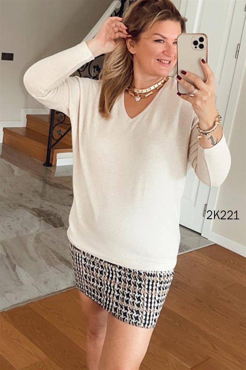 V YAKA YUMOŞ BLUZ OMUZDAN AŞAĞI 68 CM