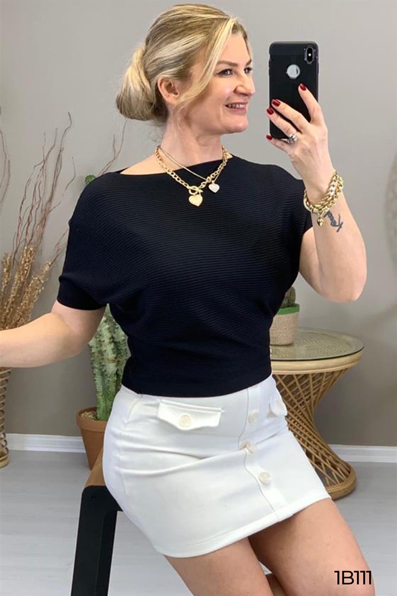 Yarasa Kol Crop Top Bluz