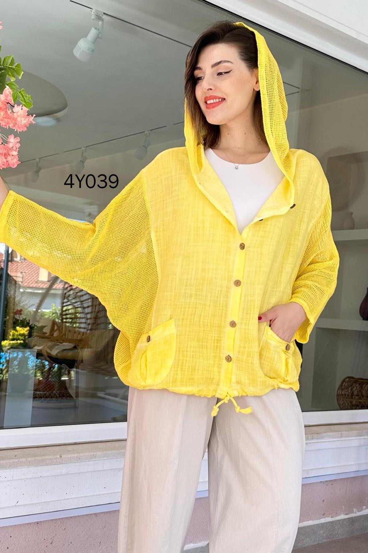 YARASA KOL FİLELİ KETEN GÖMLEK OMUZDAN AŞAĞI 70 CM