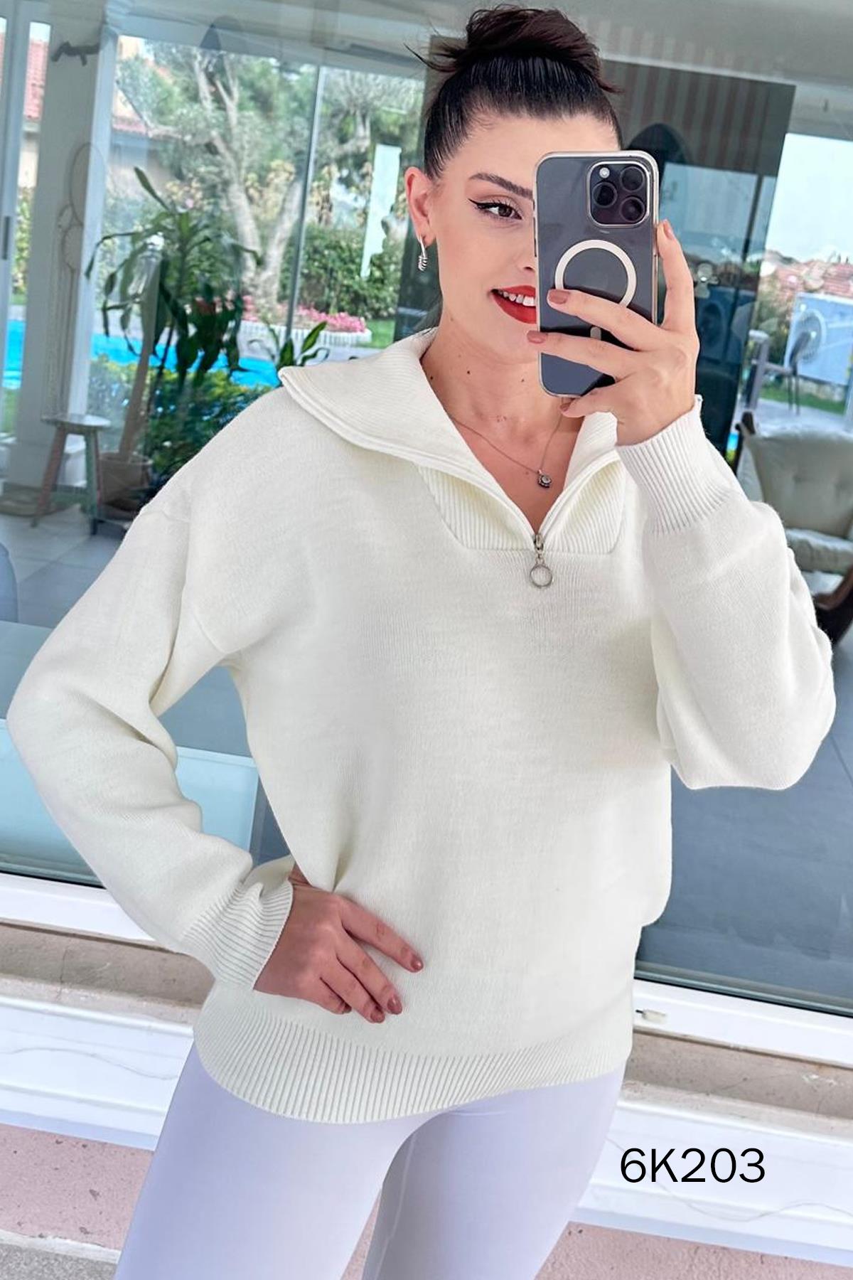 Yarım Fermuarlı Triko Bluz