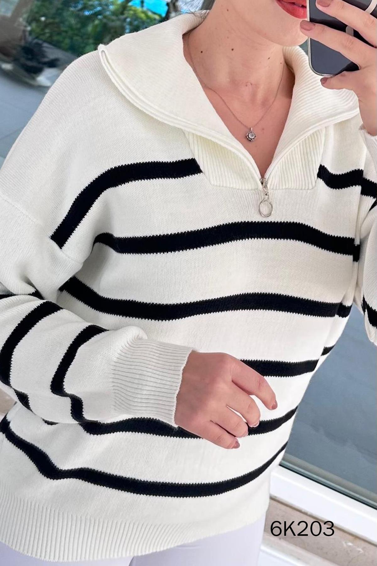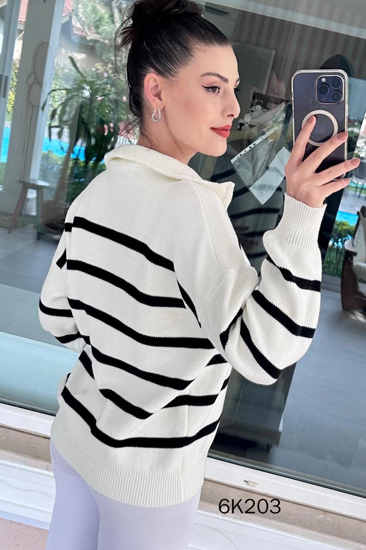 YARIM FERMUARLI TRİKO BLUZ OMUZDAN AŞAĞI 65 CM