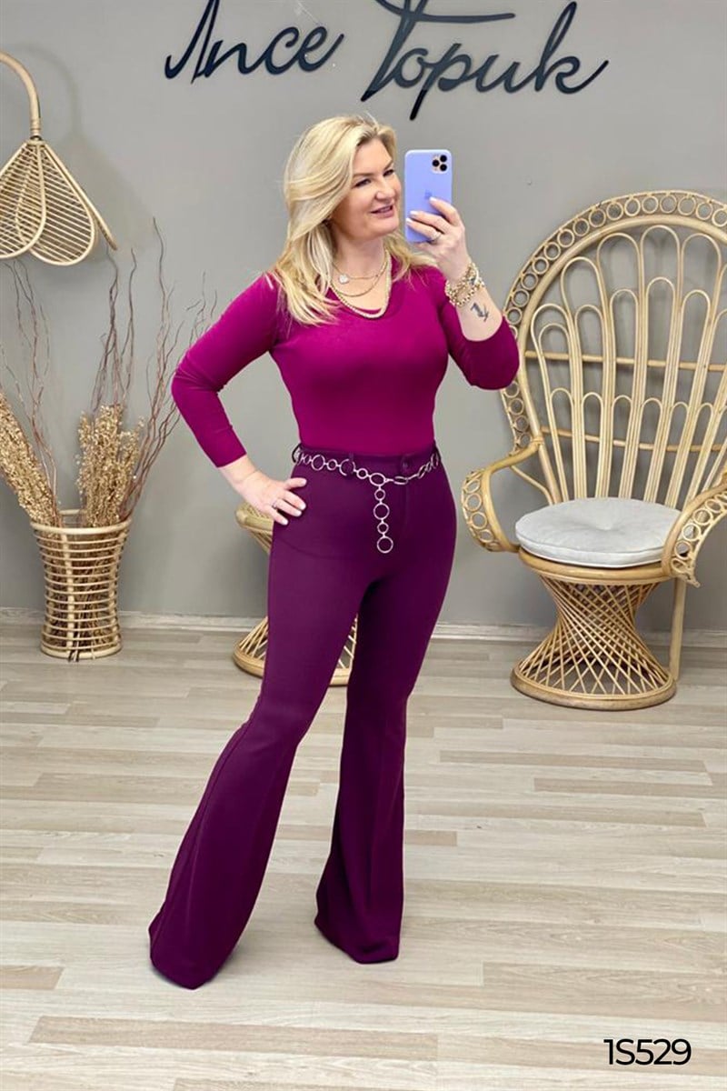 Kemerli Likralı Kumaş İspanyol Paça Pantolon
